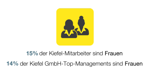 Rund 15% der Kiefel-Mitarbeiter sind Frauen und sie machen 14% der Kiefel GmbH-Top-Managements aus. Wir achten darauf, dass die Arbeitszeit nicht über das gesetzlich zulässige Maß hinausgeht.