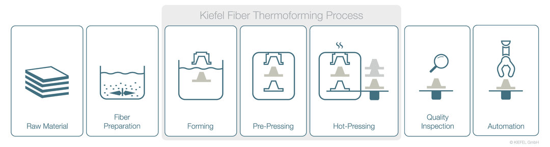 Forming: the majority of the water is extracted from the fiber mixture through the forming tool via negative pressure