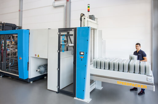 The standardized automation is supplemented by customer-specific solutions such as the SPEEDPACKER (KSP) and the SPEEDPADDER (KSD).